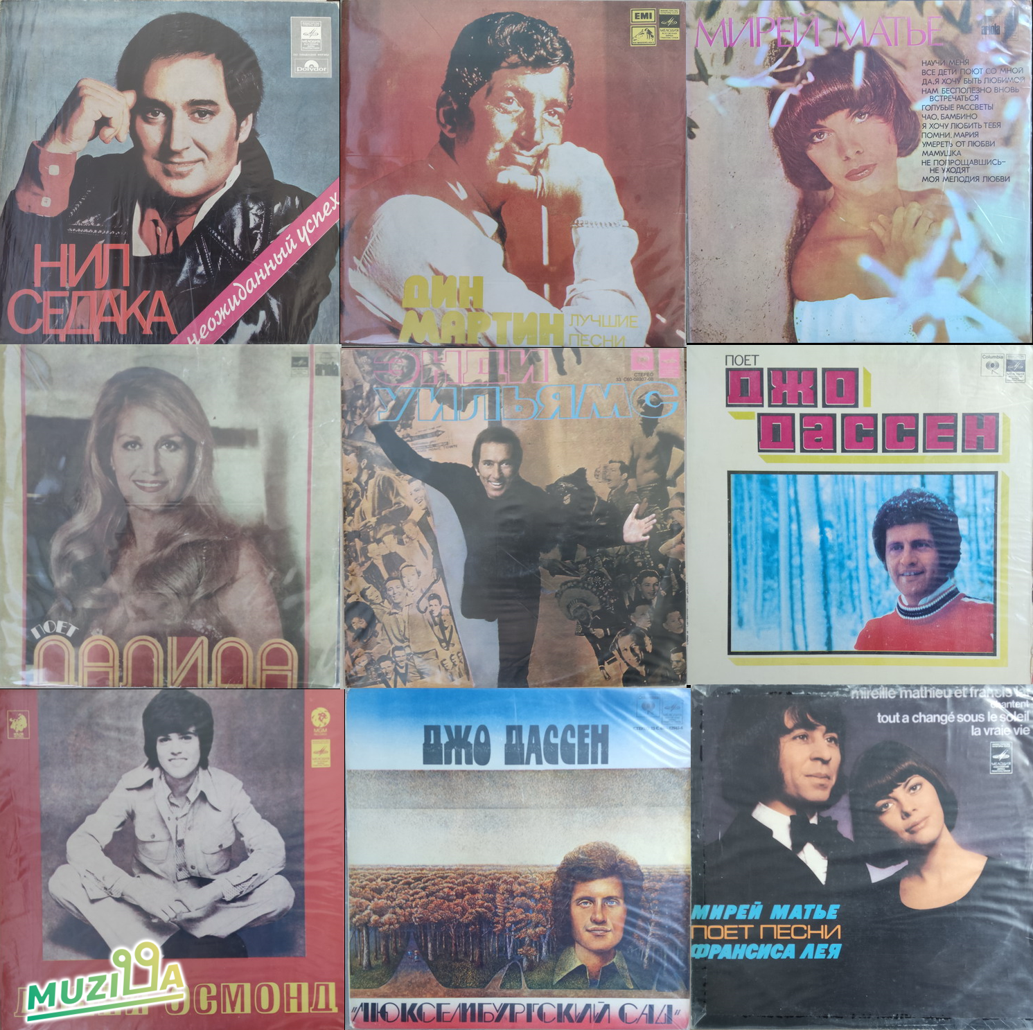 Нил Седака, Дин Мартин, Далида, Энди Уильямс, Донни Осмонд, Бони М, Джо Дассен, Мирей Матье. Очень дешево, состояние хорошее, если помыть будет VG+.