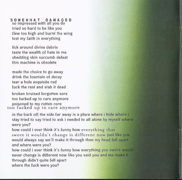 | 1-1 | Somewhat Damaged Guitar [Additional], Written-By – Danny Lohner