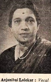 Anjanibai Lolekar was born on 8.9.1928. She learnt from Ustad Anwar Hussain Khan (1910-1966), a brother of Ustad Khadim Hussain Khan and Ustad Latafat Hussain Khan.