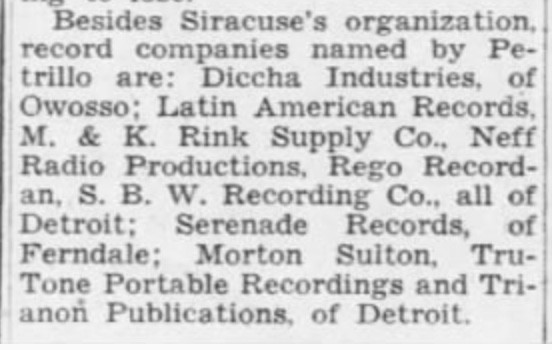 With Factories and Offices in Owosso, MI. Mainly producer of Latin American records