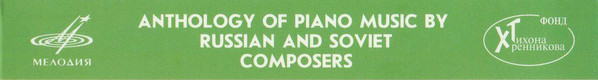 Firma Melodiya / Мелодия and the Tikhon Khrennikov Foundation / Региональный Благотворительный Фонд Тихона Хренникова present a joint project (series) - Anthology of Piano Music by Russian and Soviet Composers. The project is conceived as a series of 30 discs with recordings of not only recognized masterpieces of Russian, Soviet and Russian music, but also revived unfairly forgotten works.