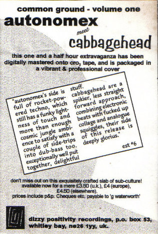 D-I-Y cassette only label that released music by autonomex lucha oroonies sink america paradox 23rd spiral hash'n'thrash synergy the astronauts secret archives of the vatican floating temple webcore cabbage head collective muslimgauze. Also compiled compilation CD releases ;off the map(charrm records) and marconi point (iris light records).