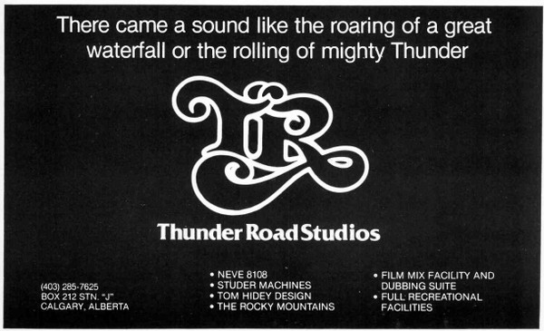 Studio located in Calgary, Alberta, Canada. Also listed as: Thunder Road Studio’s, Canada Thunder Road Ltd.