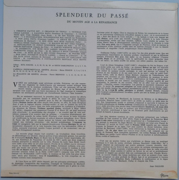 La Psallette De Geneve Pierre Pernoud Blaise Pidoux Keith Darlington Cappella Instrumentalis, Genève Rita Soguel – Splendeur Du Passé (Du Moyen-Age à la Renaissance)
