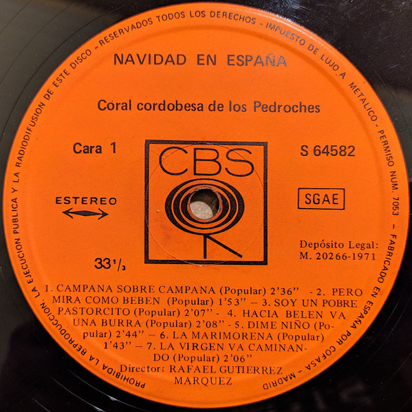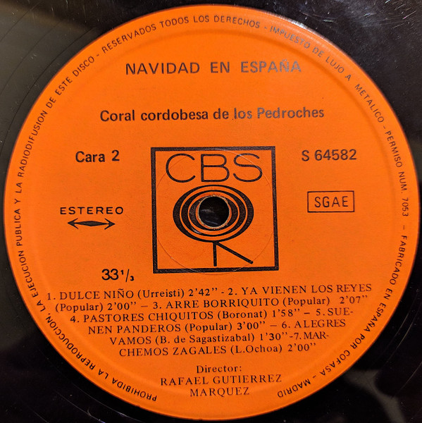 - Record Company – Discos CBS, S.A., Madrid