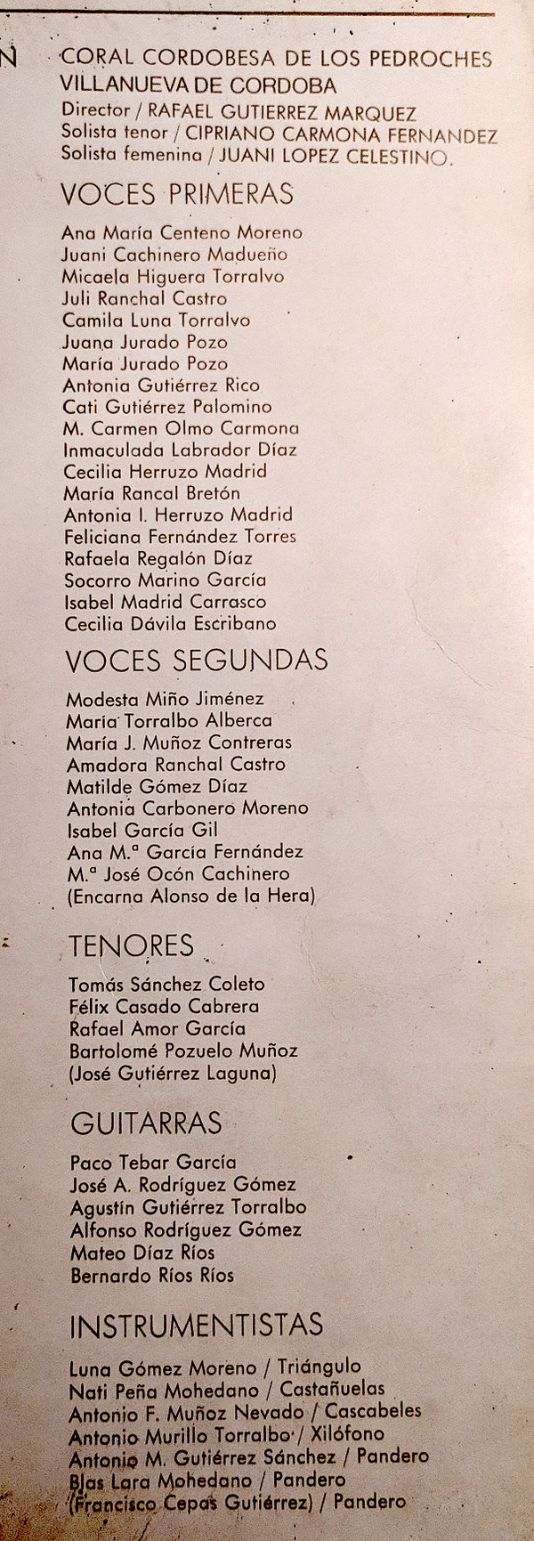 - Tenor Vocals, Solo Vocal – Cipriano Carmona Fernandez