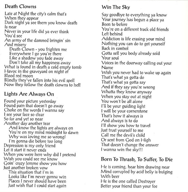 | 4 | Born To Thrash, To Suffer, To Die |