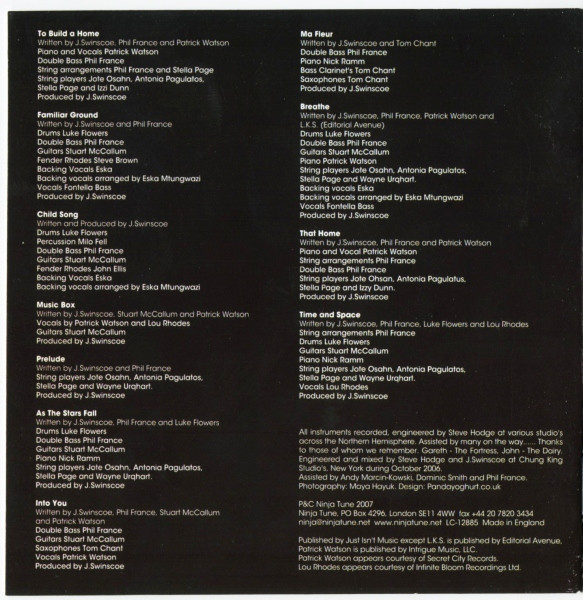 Arranged By [Backing Vocals Arranged By] – Eska Mtungwazi Backing Vocals – Eska Mtungwazi Double Bass – Phil France Drums – Luke Flowers Guitar [Guitars] – Stuart McCallum Piano – Patrick Watson Producer – J Swinscoe Strings [String Player] – Stella Page Strings [String Player] – Wayne Urquhart Strings [String Player] – Antonia Pagulatos Strings [String Player] – Prabjote Osahn Vocals – Fontella Bass Written-By – Patrick Watson Written-By – Phil France Written-By – J Swinscoe Written-By – Lhasa De Sela |