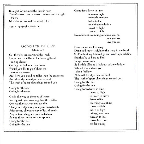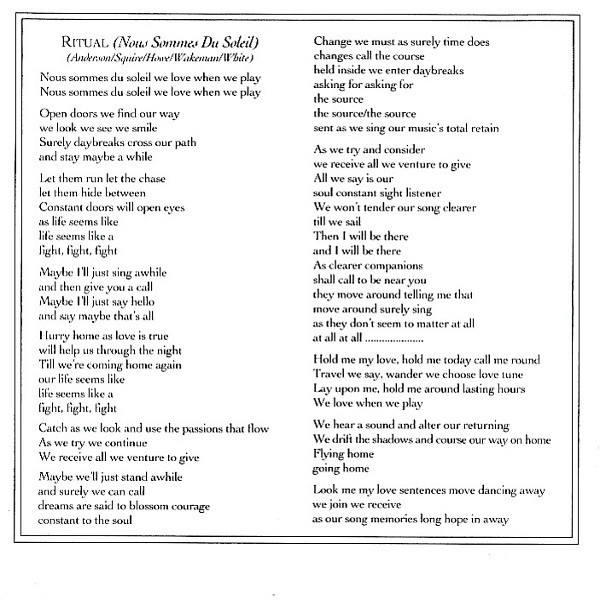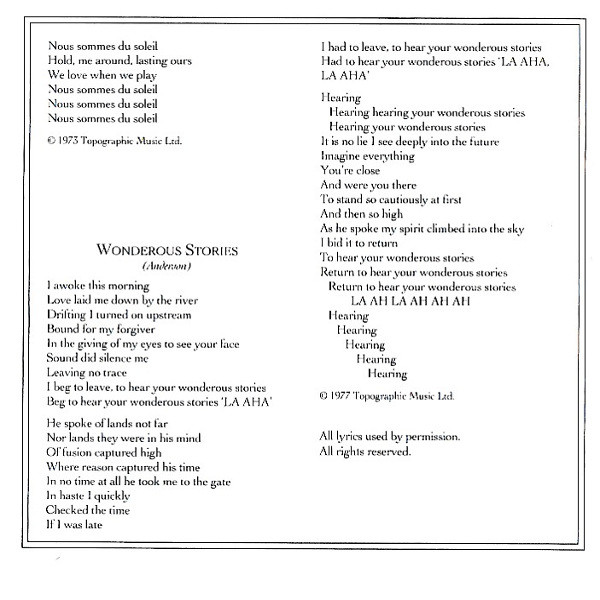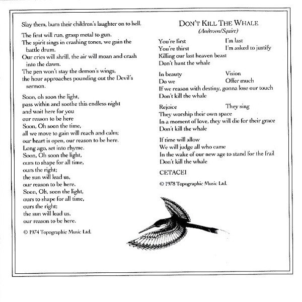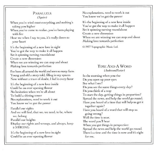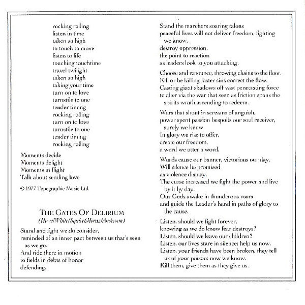 Bass – Chris Squire Drums – Alan White Guitar – Steve Howe Keyboards – Rick Wakeman Vocals – Jon Anderson Written-By – Jon Anderson |