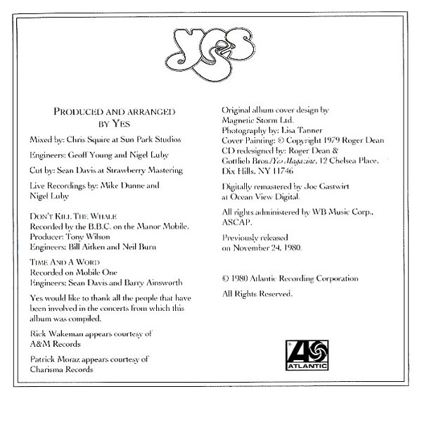 Bass – Chris Squire Drums – Alan White Engineer – Neil Burn Engineer – Bill Aitken Guitar – Steve Howe Keyboards – Rick Wakeman Producer – Tony Wilson Vocals – Jon Anderson Written By – Неизвестный #0 Written-By – Chris Squire Written-By – Jon Anderson |