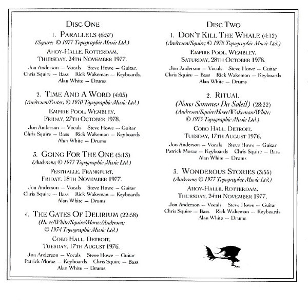 Bass – Chris Squire Drums – Alan White Guitar – Steve Howe Keyboards – Patrick Moraz Vocals – Jon Anderson Written By – Неизвестный #0 Written-By – Chris Squire Written-By – Rick Wakeman Written-By – Steve Howe Written-By – Jon Anderson Written-By – Alan White |