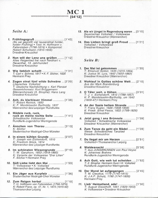 | A1 | Frühlingsgruß (So Sei Gegrüßt Viel Tausendmal Holder, Holder Frühling) | 1:43 | |