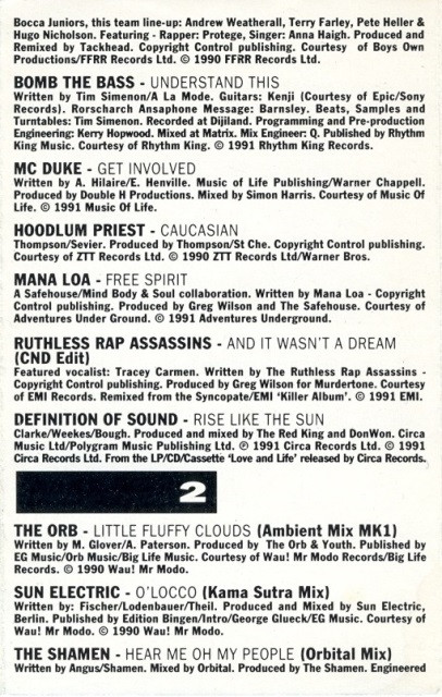 Bocca Juniors Featuring [Line-Up], Written-By – Andrew Weatherall Featuring [Line-Up], Written-By – Terry Farley Featuring [Line-Up], Written-By – Pete Heller Featuring [Line-Up], Written-By – Hugo Nicolson Rap – Protege Remix, Producer – Tackhead Vocals – Anna Haigh |