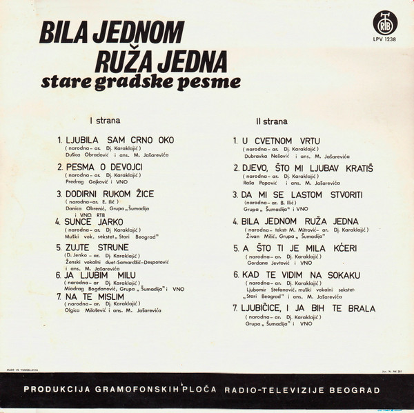 Various – Bila Jednom Ruža Jedna - Stare Gradske Pesme