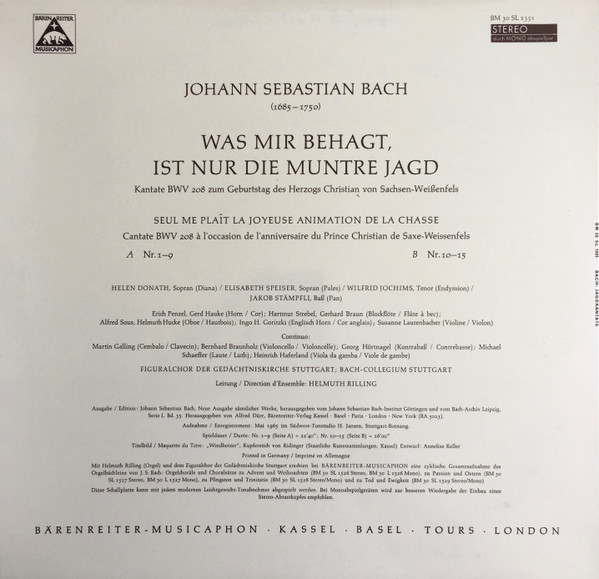 Лейбл: Bärenreiter-Musicaphon – BM 30 SL 1351
