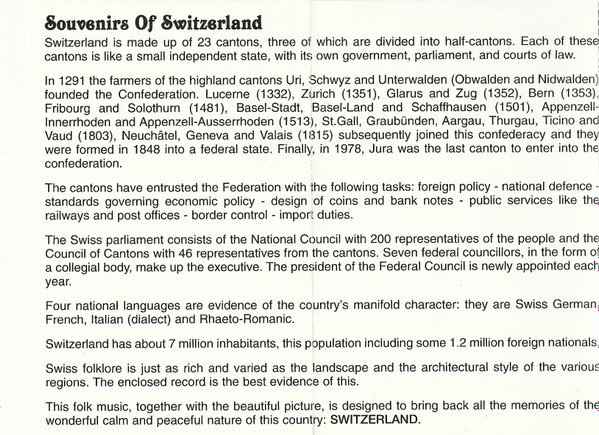 Various – Souvenirs Of Switzerland (Original Folklore Music)