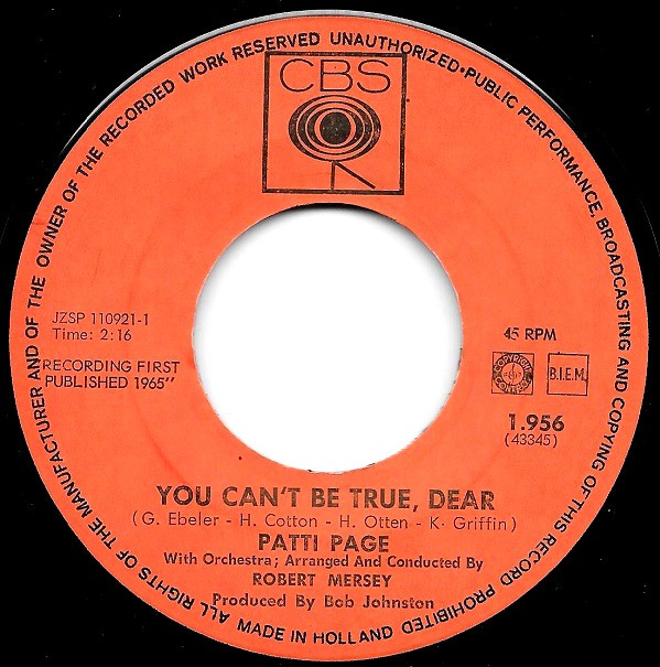 Patti Page – You Can't Be True, Dear