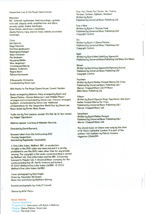 - Conductor, Orchestrated By [Additional Orchestrations For The Vespertine World Tour By] – Simon Lee (2)