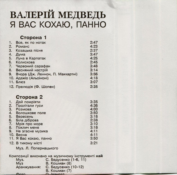 Валерій Медведь – Я Вас Кохаю, Панно