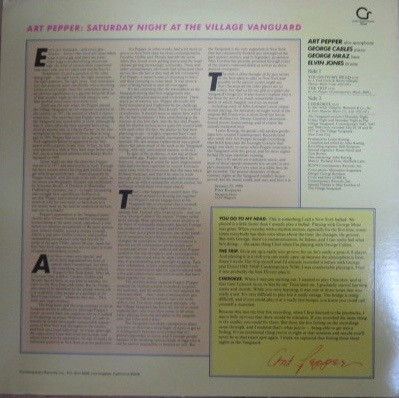 Art Pepper – Saturday Night At The Village Vanguard