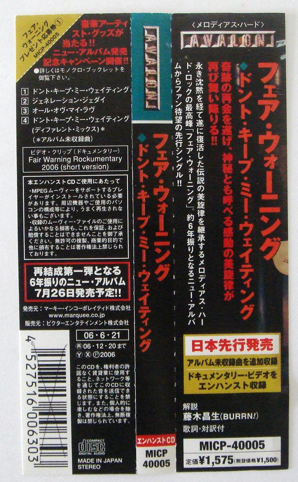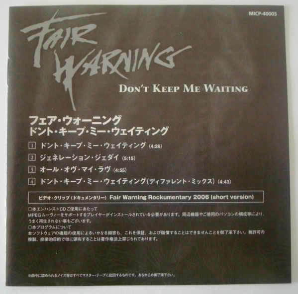 Fair Warning (2) – Don't Keep Me Waiting