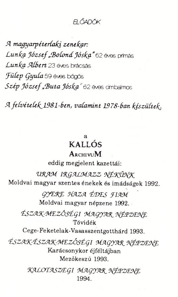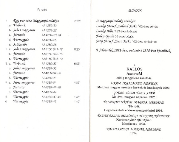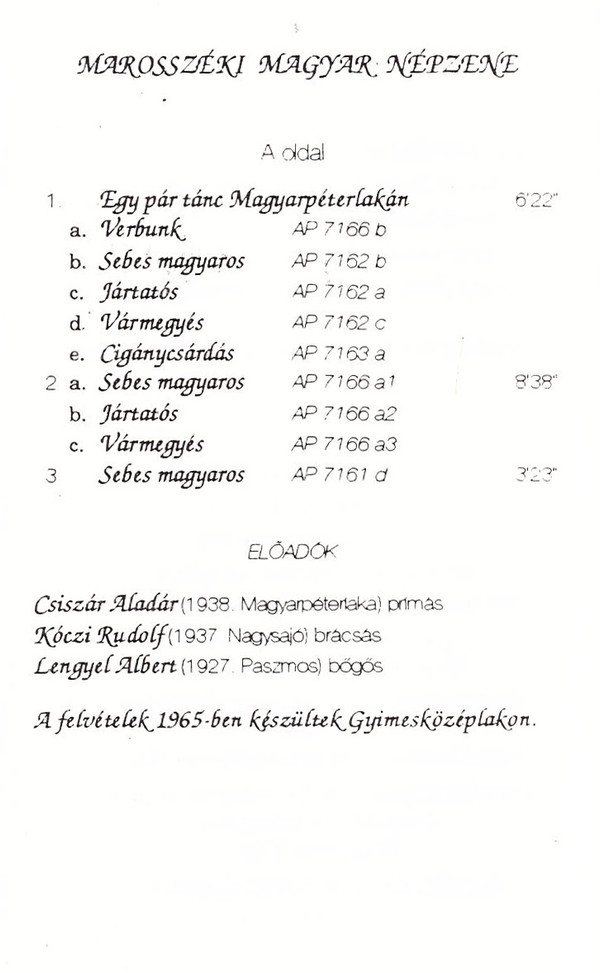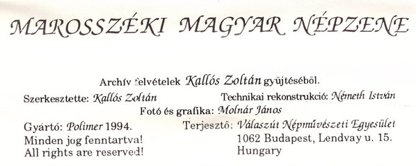 Лейбл: Polimer – KZA-MK 006 Válaszút Népművészeti Egyesület – KZA-MK 006