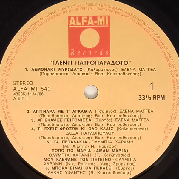 | Лейбл: | Alfa-Mi Records – ALFA-MI 540-1 |