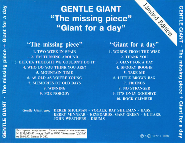 Gentle Giant – The Missing Piece / Giant For A Day