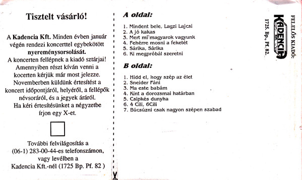 | A1 | Mindent Bele, Lagzi Lajcsi |