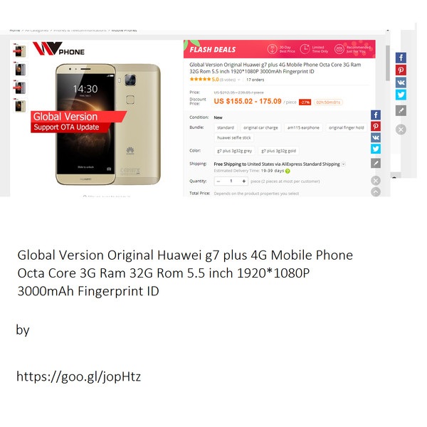 https://goo.gl/jopHtz – Global Version Original Huawei g7 plus 4G Mobile Phone Octa Core 3G Ram 32G Rom 5.5 inch 1920*1080P 3000mAh Fingerprint ID