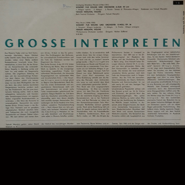 Wolfgang Amadeus Mozart – Konzert Für Violine Und Orchester A-dur Kv 219 / G-moll Op. 26