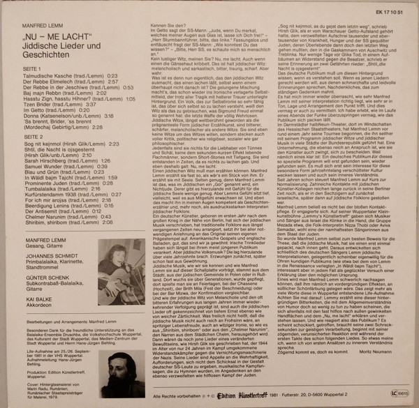 Manfred Lemm – Nu - Me Lacht (Jiddische Lieder Und Geschichten)