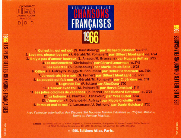 Various – Les Plus Belles Chansons Françaises - 1966