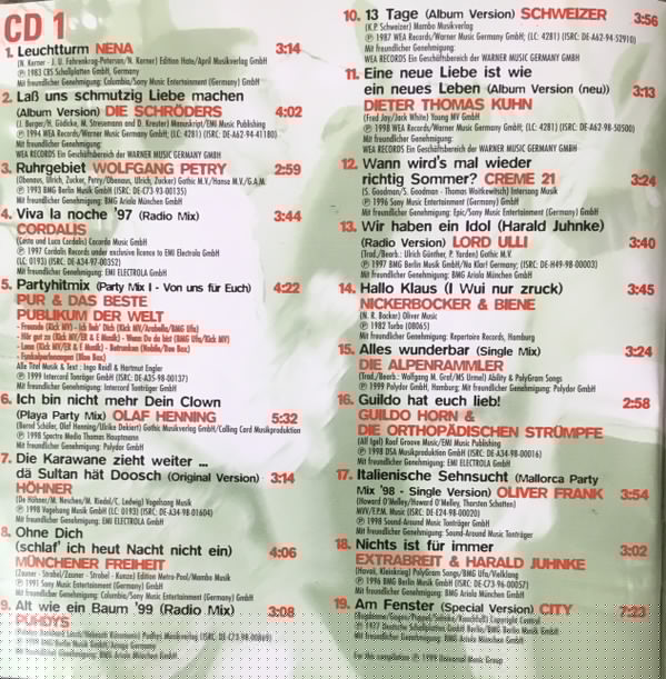 | 1-17 | Italienische Sehnsucht (Mallorca Party Mix '98 - Single Version) | 3:54 | |