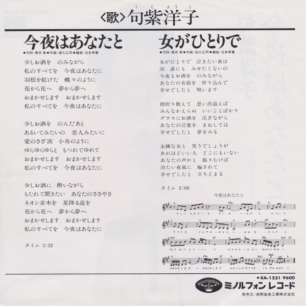 句紫洋子 – 今夜はあなたと