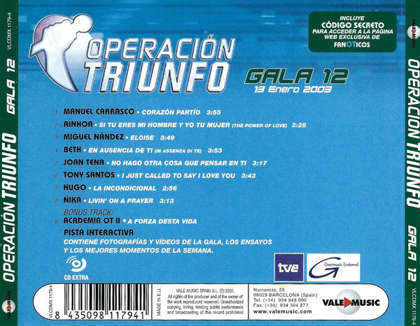 Various – Operación Triunfo Gala 12 (13 Enero 2003)