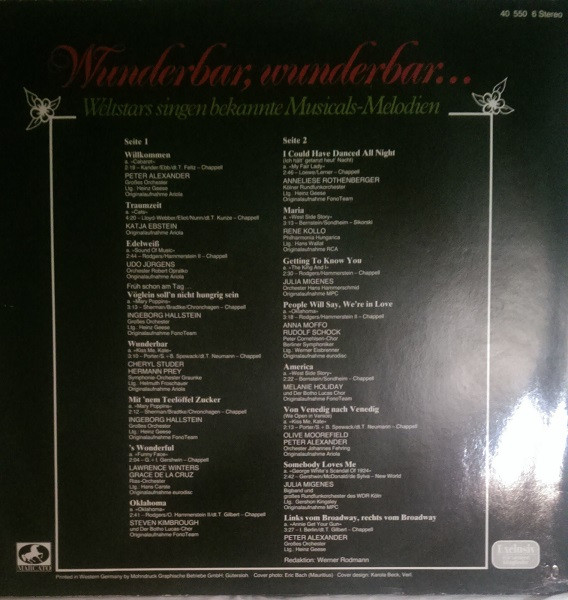 Various – Wunderbar, Wunderbar... - Weltstars Singen Bekannte Musical-Melodien