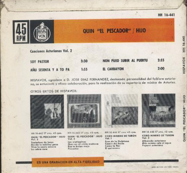 Quin "El Pescador" – Quin "El Pescador"/Hijo (Canciones Asturianas Vol.2)