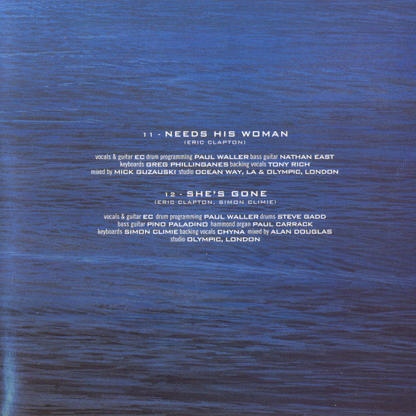 Arranged By [String Arrangements] – Nick Ingman Bass Guitar – Pino Palladino Drum Programming – Paul Waller Keyboards – Simon Climie Mixed By – Mick Guzauski Organ [Hammond], Electric Piano [Wurlitzer] – Paul Carrack Strings – The London Session Orchestra Vocals, Guitar – Eric Clapton Written-By – St. Louis Jimmy Oden |