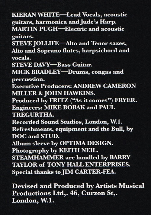 - Alto Saxophone, Tenor Saxophone, Alto Flute, Harpsichord, Vocals, Soprano Flute – Steve Jolliffe
