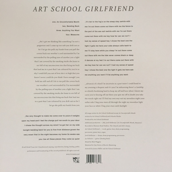 - Written-By, Producer, Vocals, Guitar, Bass, Drum Programming, Percussion, Piano, Keyboards, Organ, Artwork – Art School Girlfriend