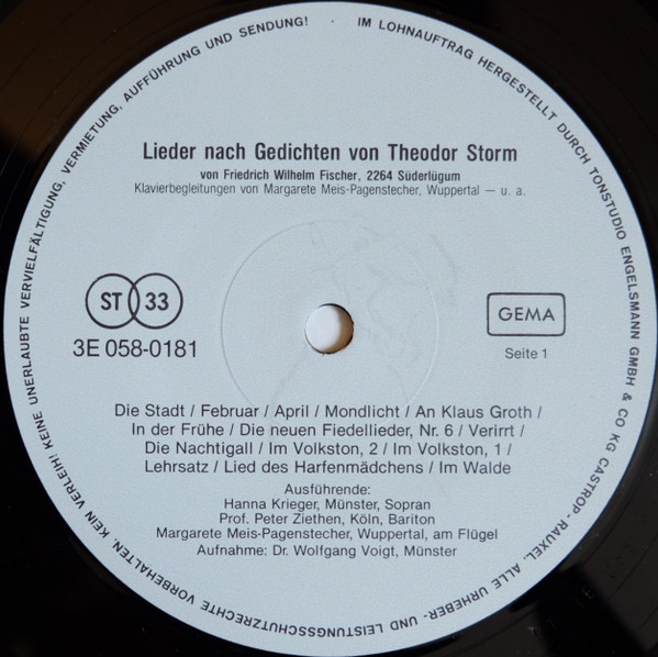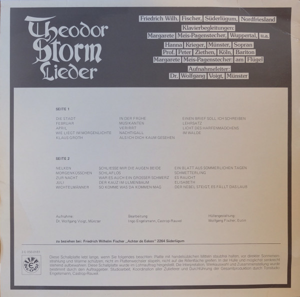 Lieder Nach Gedichten Von Theodor Storm Von Friedrich Wilhelm Fischer