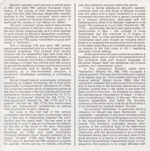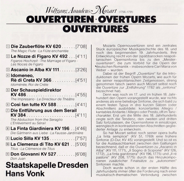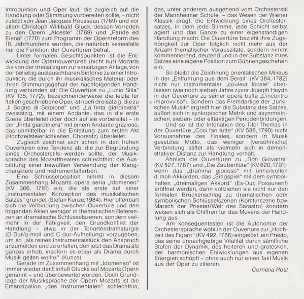 Wolfgang Amadeus Mozart – Ouvertüren. Le Nozze Di Figaro • Idomeneo • Lucio Sill • Die Zauberflöte • Cosi Fan Tutte • Don Giovanni