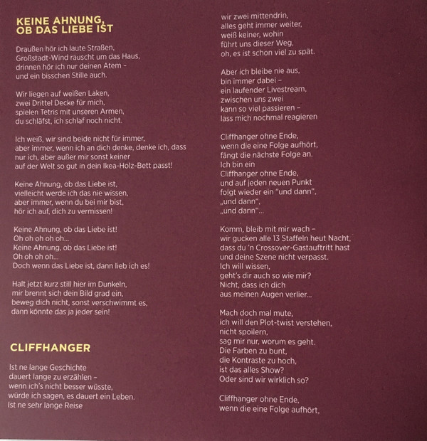 | 10 | Keine Ahnung, Ob Das Liebe Ist | 3:35 | |