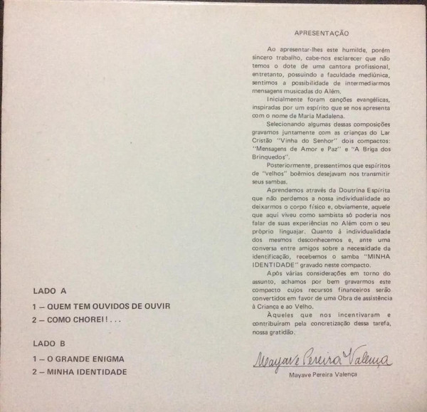 Mayave Pereira Valença – Sambas Do Além Por Inspiração Mediúnica