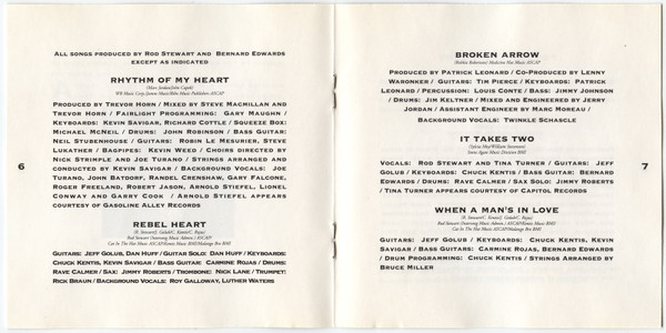 Arranged By [Strings] – Bruce Miller (2) Bass – Bernard Edwards Bass – Carmine Rojas Drum Programming – Chuck Kentis Guitar – Jeff Golub Keyboards – Chuck Kentis Keyboards – Kevin Savigar Written-By – Rod Stewart Written-By – Jeff Golub Written-By – Chuck Kentis Written-By – Carmine Rojas |