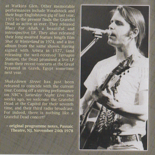 | Capitol Theatre, Passaic, New Jersey, November 24th 1978 |