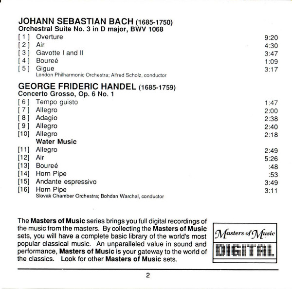 Various – The Baroque: J.S.Bach (Orchestral Suite No. 3), Handel (Concerto Grosso, Op. 6, No. 1, Water Music)