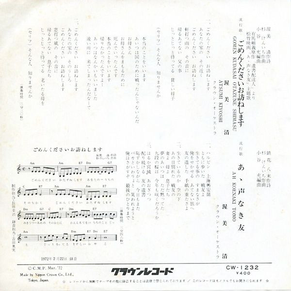 ごめんくださいお訪ねします / あゝ声なき友
