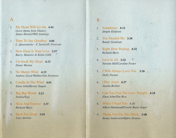 | A1 | My Heart Will Go On (Love Theme From Titanic) |